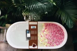 Bambusi Bathtub Caddy With Extendable Sides, Wine Glass Holder, Book Stand And Phone Tray, Gray
