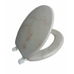 J&V Textiles Elongated Toilet Seat With Easy Clean & Change Hinge, Beveled Edges (Beige)