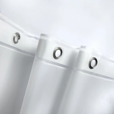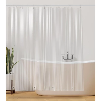 The Liba 10G shower curtain liner is an ideal choice for those looking for a durable and eco – friendly option for their bathroom. The smooth polyester (PEVA) fabric is designed to resist mildew, shrinking, and creasing, as well as to keep water droplets from sticking to the liner. The weighted bottom helps keep the liner in place and the 12 rust – proof grommets with a reinforced header help prevent tearing or fraying. The fabric is also machine washable, treated with an anti – microbial finish, and free of any unpleasant plastic smell or chemical fumes.