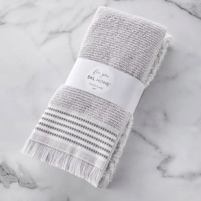 Add an elevated look to your bath with the Lincoln Park towel collection. This luxurious Turkish cotton hand towel set features two unique towel designs. One towel has a vertical striped pattern with a floral jacquard design, and the other features a decorative woven hem with fringed trim. Use them together or separately to compliment eachother. Made of Turkish cotton, which is a premium long-fiber cotton that yields stronger and smoother threads than regular cotton, it becomes even softer and more comfortable over time. Turkish towels are lightweight, yet extremely durable and super absorbent. This 2-piece set comes bundled in a decorative “for you” band which makes it great for gifting! At SKL Home we bring personality, fun, and flair to your space with the best in home décor. We’re a close-knit, small company full of big ideas in a wide variety of styles. From upbeat and modern, to classic and cozy, SKL Home has a look to complement any space. Combining 40+ years’ experience, global design inspiration, and the best fabrications, our employee-owned company continues to lead the way in home accessories.
