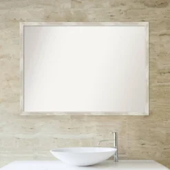 Give your bathroom the finishing touch with this Non-Beveled Wall Mirror framed with the Crackled Metallic Narrow frame. Individually made using traditional custom framing techniques, it has the quality you would expect from your local frame shop. It holds its value with premium finishing that can be appreciated up close. Because of our attention to detail and focus on artistry, architects, interior designers, and homeowners alike choose this mirror to create beautiful living spaces.