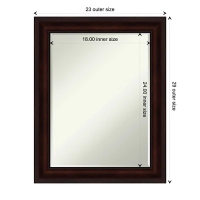 - MIRROR DETAILS: This mirror features premium glass for a clear, undistorted image and is finished with a petite 1/2-inch beveled edge which is more delicate than a traditional bevel. The overall size of this bathroom mirror measures 23 x 29 inches, including the frame. Its reflective area measures 18 x 24 inches.