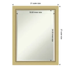 - MIRROR DETAILS: This mirror features premium glass for a clear, undistorted image and is finished with a petite 1/2-inch beveled edge which is more delicate than a traditional bevel. The overall size of this bathroom mirror measures 21.5 x 27.5 inches, including the frame. Its reflective area measures 18 x 24 inches.