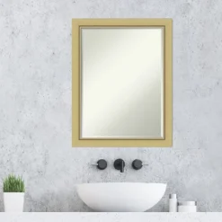 Give your bathroom the finishing touch with this Petite Bevel bathroom mirror. The Landon Gold Narrow frame is a two-toned gold frame featuring a mottled, matte gold outer surface and polished gold curved inner lip with fine lines. The outside edge is dark brown. The frame is 2 in. wide and stands 0.75 in. off the wall. It’s Individually made using traditional custom framing techniques, it has the quality you expect from your local frame shop. It holds its value with premium finishing that can be appreciated up close. Because of our attention to detail and focus on artistry, architects, interior designers, and homeowners alike choose this mirror to create beautiful living spaces.