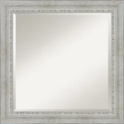 Give your bathroom the finishing touch with this 100% real wood Beveled bathroom mirror. The Rustic White Wash frame is a wide, whitewashed, distressed frame with recessed inner edge and slight texture with natural wood tones showing through.. The frame is 2.5 in. wide and stands 1 in. off the wall. It’s Individually made using traditional custom framing techniques, it has the quality you expect from your local frame shop. It holds its value with premium finishing that can be appreciated up close. Because of our attention to detail and focus on artistry, architects, interior designers, and homeowners alike choose this mirror to create beautiful living spaces.