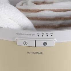 Every day is a spa day with this oversized bucket style towel warmer. Stay toasty on cold mornings, dry off after a long bath or shower, or beat chilly evenings in luxurious warmth. Available with natural bamboo water transfer accents, this extra-large towel warmer accommodates up to two 40’’ x 70’’ bath towels, robes, or your favorite throw blanket. Auto shut off feature ensures safety, with four timer settings to choose from 15, 30, 45 or 60 minutes. A single temperature setting provides the optimal heat every time. Lightweight and easy to carry, this freestanding towel warmer can be placed anywhere in the home. The handy built-in cord storage in the base keeps the extra-long power cord completely hidden when not in use, while the slim profile allows for easy storage in a closet or underneath a bathroom countertop.