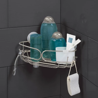 The Zenna Home Power Grip Pro Rustproof Multi-Surface Dual Mount Corner Shower Basket creates convenient storage for your shower essentials and ensures they’re always within reach. Made of durable stainless steel, this corner shower shelf is guaranteed rustproof for life. The caddy includes inverted bottle storage for quick dispensing, hooks for razors and washcloths and a storage cup for smaller items. Use Power Grip Pro suction on smooth surfaces like tile and the strong adhesive on smooth surfaces, tub surrounds and lightly-textured tile. There are no tools needed for installation.