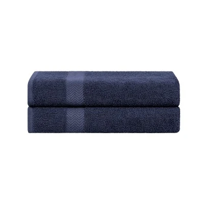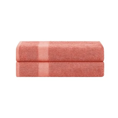 Add a chic update to your shower decor with the Deckelman Eco-Friendly Bath Sheet Set. This beautiful bundle boasts a thick border with a striking chevron pattern that complements the vibrant, solid color of the towel. These generously sized towels are extra absorbent for quick drying and will only get softer with every wash. The premium quality Cotton construction and eco-friendly dyes are ranked for quality control and durability, while the end hems are neatly turned and firmly stitched. Each set comes with 2 bath sheets. Great for travel, home, or dorm, this set is available in multiple bright and lively colors that you can mix and match.