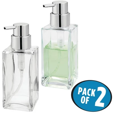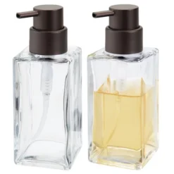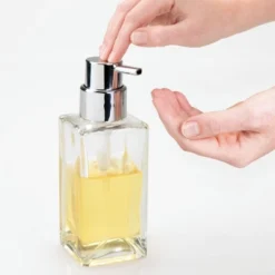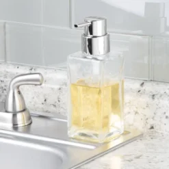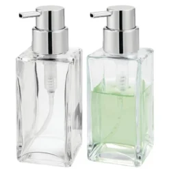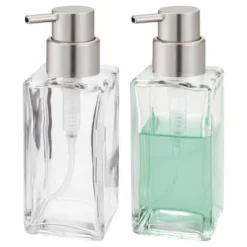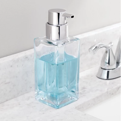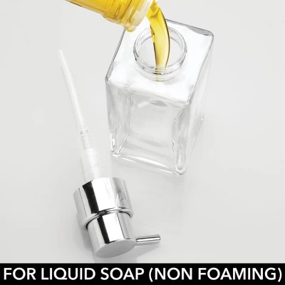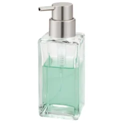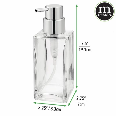Give liquid soap a stylish home on your bathroom vanity or sink with this classic Liquid Soap Dispenser Pump from mDesign. The refillable dispenser holds up to fourteen ounces of soap. Refilling the dispenser is simple: once empty, just pull off the top and fill with more liquid soap. The wide mouth makes refilling easy! The modern, square design and high-quality materials add just enough shimmer and shine to your bathroom decor to make a fashionable statement! Also, use with aromatherapy soaps or your favorite essential oils!