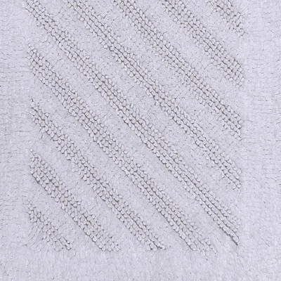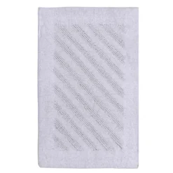 Designed to sit alongside your tub, shower, or sink and provide a comfortable, warm, dry spot for you to stand, the Knightsbridge rug will coordinate with infinite decorating styles. This opulent diagonal striped bath rug is made of 100% soft plush cotton and is super soft to the touch with a dense lush pile. Its reversible design is the ultimate in comfort while being extremely absorbent and functional. The beautiful array of contemporary colors will add an elegant look to any bathroom decor. Available colors: White, Ivory, Silver, Natural, Sage, Light Blue, and Stone. Measures: 24in x 40in