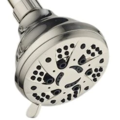 AquaDance High-Pressure Luxury 6-setting Spiral Shower Head comes in a premium Brushed Nickel finish. The premium spot-resistant Brushed Nickel finish will not scratch, chip, or fade for long-lasting results, and with anti-clog, rub-clean jets work to prevent lime buildup for an easier cleaning experience. Easy-turn click lever for effortless flow selection and the 6 flow settings include Rain, Massage, Mist, and Pause and two mixed modes. The showerhead’s high-powered 3-zone Precision Flow dial is superior for its water pressure and versatility. Advanced Spiral face design with the angle-adjustable swivel ball joint for higher efficiency and flow velocity. Convenient water-saving Pause mode for instant on/off flow control. The showerhead comes complete with the following: washer, plumber’s tape, and easy-to-follow instructions. Limited lifetime warranty with 100% hassle-free return policy directly from the manufacturer. Easy to install without the use of tools with just one hand-tighten connection, fits any standard shower arm.