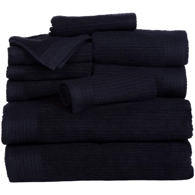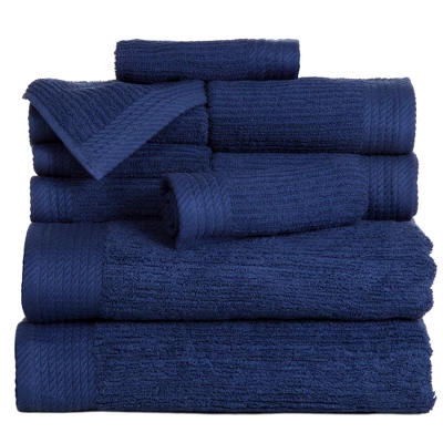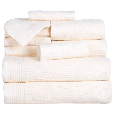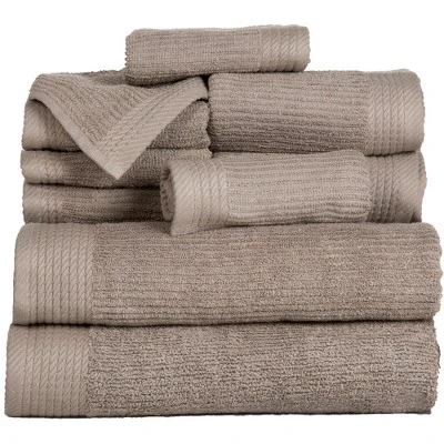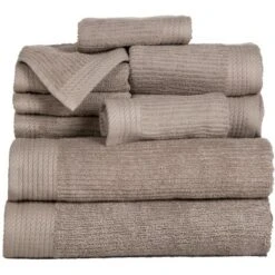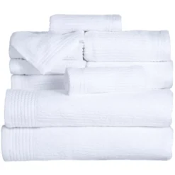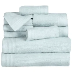Pure 100% cotton terry is woven into a plush ribbed bath towel for a luxurious, spa-worthy towel that has exceptional ribbed pile that is subtly soft, yet invigorating against the skin. This 10 piece Ribbed Towel set will add contemporary style to any bathroom decor with its elegant design. Fingertip towels are included to enhance your powder room decor.