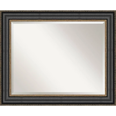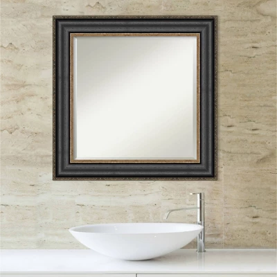 Give your wall or bathroom the finishing touch with this wall-mounted mirror. An Amanti Art mirror holds its value with premium finishing that you can appreciate up close. This decorative mirror features a black scooped frame with decorative champagne inner and outer edges. Amanti Art is headquartered in Madison, WI, and provides high-quality, handmade framed art, mirrors, and organization boards for your home improvement projects. Our home decor products are made using traditional custom framing techniques that give you the kind of quality you’d expect from your local frame shop. Because of our focus on workmanship, our products are used by architects, developers, interior designers, and homeowners alike to create beautiful functional living spaces.