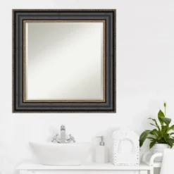 - WHAT MAKES A MIRROR LOOK GREAT: You’ll look in your mirror every day. An Amanti Art mirror holds its value with premium finishing that you can appreciate up close. To position your mirror properly, hang it so your reflection (and anyone else who uses it daily) fits in the center.
